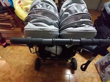 Entra anche completamente aperto nel bagagliaio di una Jogger. Si chiude con una mano in modo molto pratico e maneggevole. Porta oggetti alla base molto capiente e resistente in ottime condizioni.Le sedute hanno fronte mondo e fronte mamma a scelta per ogni seduta, alternabili. Usato con gemelli ma adattissimo anche come fratellare.