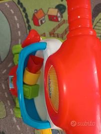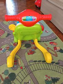 Come nuovo, perfettamente funzionante Gioco 2 in 1: primi passi a forma di scooter che è anche un centro attività per imparare lettere e numeri in italiano e in inglese Il cestino frontale dello scooter è un incastraforme dove inserire le 3 formine incluse nel gioco Stimola la percezione visiva e uditiva grazie ai 4 tasti interattivi (il clacson, il rullo, la pagina del libro e le ruote) e alla luce sotto al fanalino Bilingue italiano/inglese