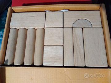 In condizioni perfette, mai usato, vendo gioco di legno Plan Toys, valigetta di 30 pezzi in legno naturale da costruzione.