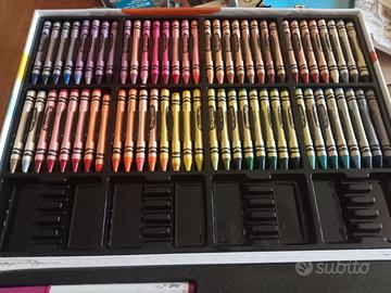 Valigetta Crayola con contenuto parziale rispetto all' originale: pastelli tutti e mai usati, pennarelli quasi tutti e carichi, inseriti 6 evidenziatori in omaggio, matite mancanti ( possibile comprare le 78 matite di altro annuncio)