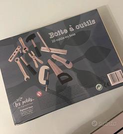 Un bellissimo set per giocare a fare finta. Dotata di strumenti in legno e molte cose per costruire, avvitare, svitare, martellare. Un gioco che incoraggia l’immaginazione e il gioco sociale ma anche la coordinazione e la motricità fine.