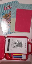 Vendo valigetta LOL Surprise Crea la Moda. Contiene: una valigetta in plastica, 4 stechbook, 1 base in cartone, 1 set di fogli adesivi, 1 set di stencil, 1 set di fogli pattern, forbicine, colla, 5 pennarelli, glitter argento.
