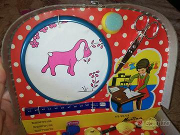 Vendo valigetta giocattolo tutto per il cucito vintage, come nuova, 23x17x8 cm. Completa di tutto.