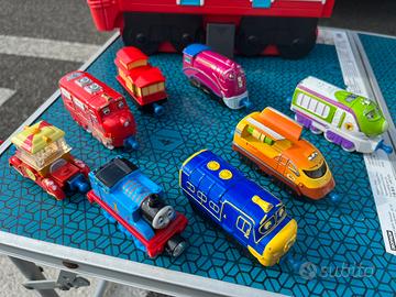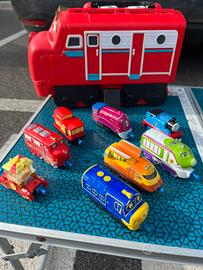 Valigetta porta trenini Chugginton a 17 scomparti + 8 trenini in metallo.