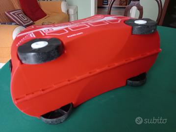 Valigia a forma di autobus rosso, perfetta per i bambini.