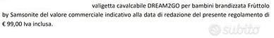 ULTIMA RIMASTA!!! Valigia cavalcabile Samsonite brandizzata Frùttolo..... i bambini possono sedersi sopra e farsi trainare dai genitori grazie alle 4 ruote integrate, con tracolla removibile che la rende facile da trasportare. - Capiente e leggera (30 litri per 2,1 kg), è dotata di cinghie interne per tenere tutto in ordine. - Nuova, Ottima idea regalo, valore circa €100 vendo a soli €60 spese di spedizione col corriere SDA a mie spese! CARATTERISTICHE E MISURE IN FOTO