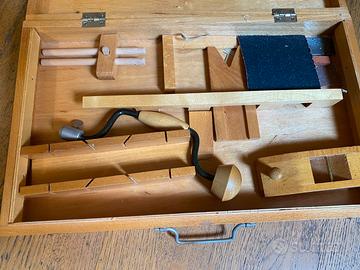 VECCHIA Valigetta da piccolo falegname con attrezzi in miniatura portatili
