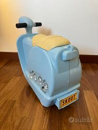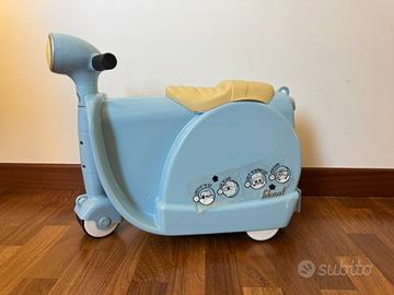 La Skoot Ride-On Suitcase è una valigia 2-in-1 pensata per i più piccoli. Ha una carrozzeria rigida, ruote robuste e uno sterzo funzionante, così il bambino può sedersi sopra e farsi trainare o guidare da solo  . L’interno offre uno spazio di circa 13 litri per riporre vestiti o giocattoli .