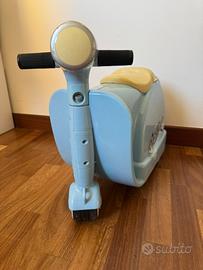 Lo Skoot Ride-On Suitcase è una valigia che si trasforma anche in un giocattolo con cui il bambino può cavalcare come su uno scooter.