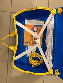 Vendo valigia per bambino Trunki blu della polzia, usato una sola volta. Consegnato con Scatola originale, libretti e accessori come da foto allegate.