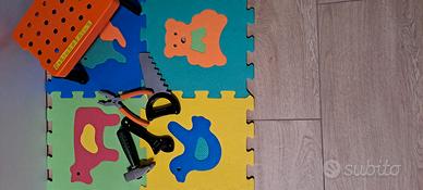 -banchetto del meccanico con attrezzi + gioco di assemblaggio in legno con viti bulloni e cacciavite (insieme 15 euro)