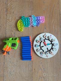 Vendesinin blocco 8 giochi diversi tra loro tutti usati ma in ottime condizioni: pistola nerf- giocamondo - indovinachi portatile - space gravity - l’aeroporto - pop it - crea orario - happy Ippo