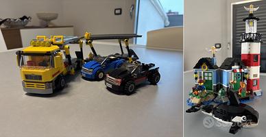 Vari set Lego in ottime condizioni. In particolare: - Lego Minecraft 21165 – La Fattoria delle Api - 25€; - Lego Creator 31051 – Punta del Faro – 45€; - Lego Cars 2 8678 – Francesco – Versione Deluxe – 15€; - Lego Technic 42010 – Fuoristrada da Corsa - 15€; - Lego Technic 9390 – Mini Carro Attrezzi – 15€ (manca la scatola); - Lego City 60050 – Stazione Ferroviaria – 60€; - Lego City 60191 – Team di Esplorazione Artico - 15€; - Lego City 60060 – Camion Autotrasportatore - 35€; - Lego City 60172 – Duello Fuori Strada (mancano i pezzi n. 6208766 e 4530673 – carena e telaio moto) – 20€. N.B.: dove non ci sono note in parentesi, si intendono i set completi di scatola, pezzi e istruzioni originali. Disponibili eventuali foto di scatole e set montati. Possibilità di acquisto singolo al prezzo indicato accanto ad ogni set. Acquistabili tutti insieme a 230€.