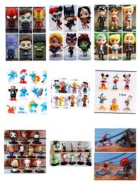 Marvel Avengers, Topolino e co., Peanuts ( Snoopy e co.), Spiderman, I Puffi, Streghe cattive Disney, Principesse Disney, Iron Man e Deadpool ciccioni ( serie Fat), Famiglia Addams, Joker e personaggi DC's Comics, Star Wars/Mandalorian, Demon Slayer, Grogu ( Baby Yoda), Funko Pop Mercoledì Addams, Harry Potter, Alien figma Sp-108, Tom & Jerry, NieR:Automata, Zelda , Gollum e tanti altri che sono nelle foto.