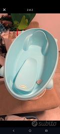 Vendo vaschetta bagnetto azzurra marca Prenatal. Aloni bianchi dovuti all'utilizzo di amido di riso nei bagnetti dei miei 2 figli. È una vaschetta da terra senza rialzo.