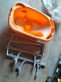 vasca in plastica per bagnetto, con supporto per vasca da bagno.