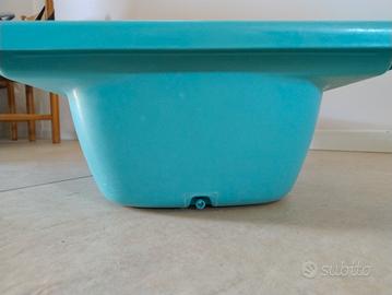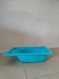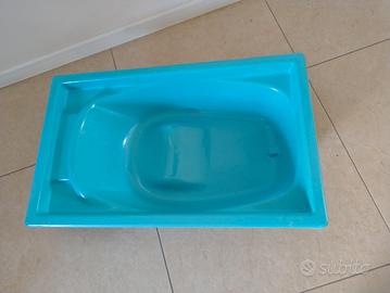 regalo vaschetta per bagnetto neonato o bimbo. sul fondo c'è il foro per la fuoriuscita dell'acqua, che durante il bagnetto deve venire tappato con ingegno (basta una matita o qualcosa di simile da infilare)