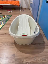 Vaschetta bagnetto neonato 0 - 12 mesi. Schienale antiscivolo e termometro incorporato per la temperatura dell'acqua. Usato come nuovo