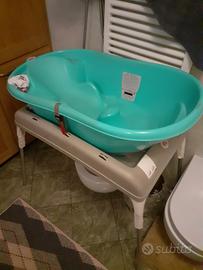 Vaschetta per bagnetto Ok Baby con cavalletto di supporto utilizzabile anche come fasciatoio.