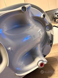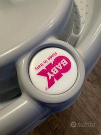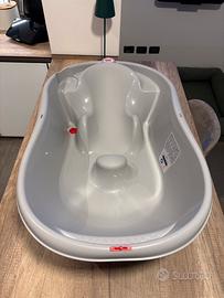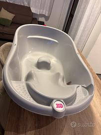 vaschetta per il bagnetto OKBABY modello Onda Evolution, usata pochissimo e in condizioni impeccabili. È uno dei modelli più sicuri e confortevoli sul mercato, perfetta per rendere il momento del bagnetto rilassante per il bimbo e pratico per i genitori. ✨ Caratteristiche principali: • Design Ergonomico: Doppia seduta studiata per seguire la crescita del bambino (0-6 mesi in posizione sdraiata e 6-12 mesi in posizione seduta). • Massima Sicurezza: Dotata di tre punti d'appoggio (ascelle e inguine) per evitare che il piccolo scivoli. • Termometro Integrato: Display a cristalli liquidi per monitorare la temperatura dell'acqua in tempo reale. • Livello dell'acqua: Indicazione del livello massimo consigliato per un uso sicuro. • Facile da svuotare: Comodo tappo a vite per lo scarico rapido dell'acqua. 📝 Dettagli: • Stato: Usata pochissimo, pulita e igienizzata. • Colore: Grigio perla (elegante e neutro). • Produzione: Prodotto di alta qualità Made in Italy.