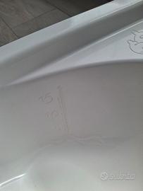 Vaschetta per bagno neonati, bianca, in ottime condizioni, usta pochissimo. Può essere usata sia agganciata al fasciatoio che singolarmente.