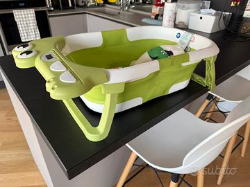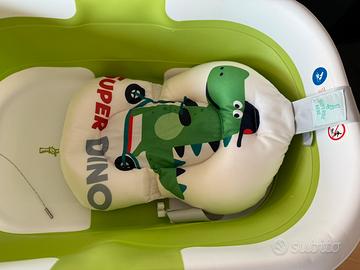 Vendo vaschetta da bagno per neonato con termometro e cuscino morbido Color verde e disegno coccodrillo