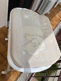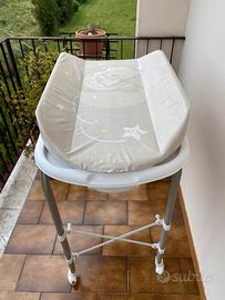 La vendo perché ormai non la usiamo più, ma è stata davvero una grande aiuto nei primi mesi 😊 È una vaschetta per neonato CAM con fasciatoio sopra, comodissima perché ti permette di fare tutto senza doverti piegare ogni volta. Ti semplifica tantissimo il momento del bagnetto, soprattutto quando sei da sola. È completa di tutti gli accessori:il tubo per lo scarico dell’acqua (comodissimo per non sollevare la vaschetta piena), il tappo, l’accessorio per lavare la testina del bimbo e anche la balda inferiore dove puoi appoggiare tutto il necessario durante il bagno.La balda non è mai stata usata per mancanza di spazio in bagno. Il fasciatoio è in buono stato, con normali segni di utilizzo, niente che ne comprometta l’uso. La vaschetta ha una forma ergonomica che aiuta a tenere il bimbo in posizione in modo più sicuro, e con le ruote si sposta facilmente. È una di quelle cose che all’inizio fanno davvero la differenza nella routine quotidiana. Per qualsiasi domanda scrivimi pure 😊