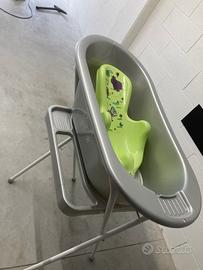 Vendo vaschetta bagno bimbi con cavalletto di appoggio più il riduttore con ventosa per neonati