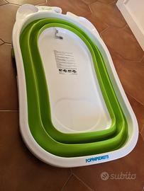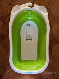 Il bagnetto chiudibile Soffietto è indicato dalla nascita fino a 15 kg. La vaschetta è morbida, comoda e pratica. Si può chiudere e appendere nella doccia.