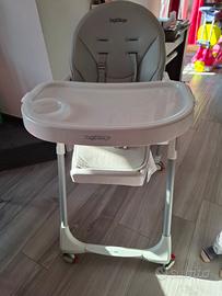 Peg Perego Prima Pappa Follow Me Seggiolone Pappa Neonati Reclinabile, Funzione Sdraietta, 4 ruote, Pieghevole e Ultracompatto, per Bambini da 0 a 3 Anni (0-15 kg), Ice