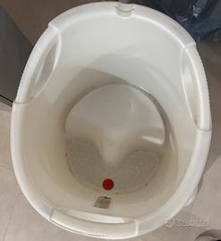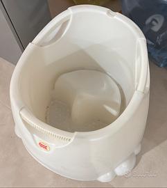 Vaschetta da mettere in doccia per lavare i bambini seduto dai 6 mesi circa o per fargli fare il bagnetto d’estate. Per svuotarla si sgancia la valvola sul fondo