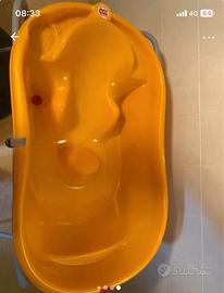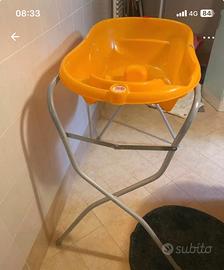 Vendo set completo per il bagnetto composto da vaschetta ergonomica OkBaby Onda e supporto a cavalletto in metallo coordinato. Un kit indispensabile per lavare il bambino in totale sicurezza e massima comodità per i genitori. Caratteristiche della Vaschetta: • Design Ergonomico: Doppia posizione (0-6 mesi e 6-12 mesi) per seguire la crescita. • Sicurezza: Seduta con tre punti d'appoggio (ascelle e inguine) per evitare scivolamenti. • Termometro integrato: Indicatore a cristalli liquidi per controllare la temperatura dell'acqua in tempo reale. • Praticità: Tappo a vite per uno svuotamento rapido e senza sforzi. Opzioni inclusa con il tubo di scarico. Caratteristiche del Supporto: • Salva-schiena: Altezza perfetta per fare il bagnetto senza doversi chinare sulla vasca o sul piatto doccia. • Salvaspazio: Cavalletto pieghevole, si ripone facilmente dietro una porta o in un angolo quando non serve. • Stabilità: Struttura in metallo solida con piedini antiscivolo.