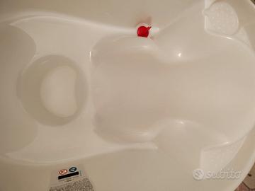 Vendo vaschetta OKBABY con termometro da bagno integrato e tappo di scolo acqua, utilizzabile da 0 a 36 mesi