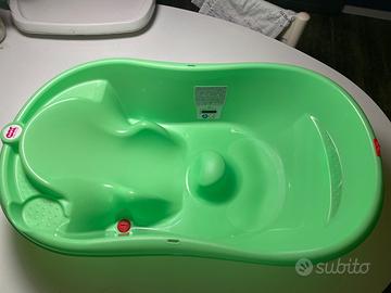 Vaschetta da bagno made in Italy ergonomica per neonati da 0 a 12 mesi con termometro digitale incorporato. Dal lato sdraietta si può utilizzare dalla nascita, dall’altro con supporto inguinale può essere utilizzata quando il bambino sta seduto.