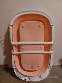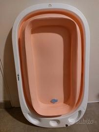 Vaschetta Bagnetto Pieghevole, per neonati 0-36 mesi con Supporto Sedile e Tappo di Scarico, colore rosa. Con supporto in rete per adagiare in sicurezza il neonato. Materiale silicone, richiudibile su se stessa. Praticamente mai usata, come nuova.