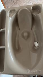 vaschetta con 2 sedute anatomiche (una inclinata per bimbi da 0 a 6 mesi e una seduta per bimbi da 6 a 12 mesi).Dotato di tappo e tubo per scarico dell’acqua, vani portasapone e porta spugnetta, cassetto portaoggetti con porta flaconi. l bagnetto Volare misura da aperto: L 77,5 – P 69 – H 101 cm e da chiuso: L 72,5 – P 22 – H 108 cm. Dotato di chiusura compatta. Incluso ci sono le istruzioni per il montaggio compreso di viti. Utilizzato solo due volte