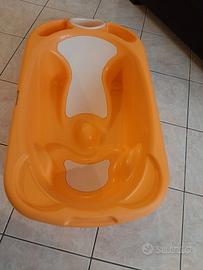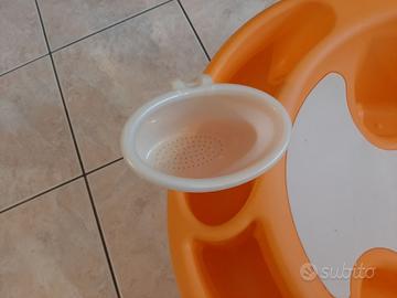 Vaschetta per bagnetto con seduta ergonomica e antiscivolo, completa di contenitore per doccino. Come nuova.