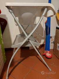 Comoda vaschetta per il bagnetto del neonato. Sostegno in metallo richiudibile per salvare spazio e canula per svuotare l'acqua nel posto in cui siete più pratici.