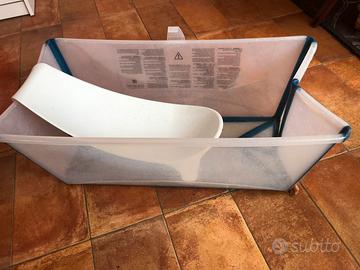 Vendo vaschetta per il bagnetto dei piccoli a marchio STOKKE completa di riduttore. La vaschetta è completamente ripiegabile e per questo facile da conservare, ed è completamente lavabile.