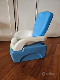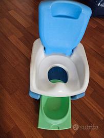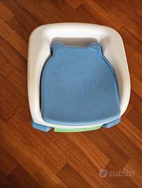 Vasino per bambini marca Evenflo, modello con schienale e braccioli, molto stabile e comodo per il passaggio al WC. Dotato di cassetto estraibile per una facile pulizia. Usato ma in buone condizioni, pulito e igienizzato, pronto all'uso. Ideale per bambini 1-3 anni. Solo Ritiro a mano, lo do a 5€ se viene ritirato immediatamente