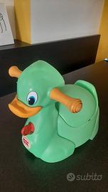 Vasino quack ok baby con manici e coperchio. Il becco della papera è di morbida gomma e se schiacciato produce il verso dell'animale.