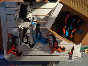 VATOS laser tag Pistole e Gilet composto da 4 pistole laser e 4 gilet usate un paio di volte regalo 3 Walkie Talkie