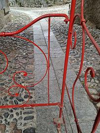 Lettino in ferro battuto larghezza cm 63, lunghezza cm 134, altezza totale testata cm 130, piedi alteza 103, sponda parte testa cm 91, piedi cm 82. Manca la la struttura appoggia rete che si può far fare.