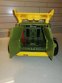 Veicolo tartarughe ninja. Qualche adesivo rovinato ma si apre in diversi punti e può contenere i personaggi (annuncio a parte)