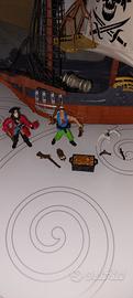 veliero pirata con annessi accessori?2 pirata,1 scimmia, 1 forziere e armi varie.lunghezza 60 cm altezza 50 cm