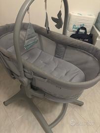 Culla indipendente, lettino, sdraietta rialzata, seggiolone e prima sedia, per gestire il bambino da 0 a 36 mesi nello spazio di un metro quadro.