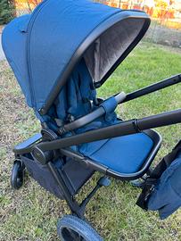 Aperto solo per fare la foto. Nuovo. Passeggino e navicella con parapioggia, zaino, sacco proteggi gambe e zanzariera. Con adattatori anche per altri marchi di ovetto.