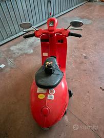 vaspa rossa motorizzata a batteria i con acceleratore e freno, cosi il bambino può portarla da solo, con rotelline laterali ,adatta per 3 -5 anni ,caricabatterie incluso