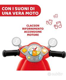 Chicco Vespa per Bambini Primavera Rossa, Moto Giocattolo Cavalcabile con Pannello Elettronico, Luci e Suoni, Ruote di Supporto Rimuovibili, Max 25 Kg - Giochi per Bambini 1-3 Anni