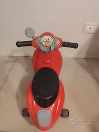 Vespa cavalcabile Chicco per bambini, colore rosso. Funzionante con suoni/luci. Buone condizioni generali, presenta solo la mancanza di uno specchietto (vedi foto). Perfetta per bambini piccoli, molto divertente. Ritiro a mano.
